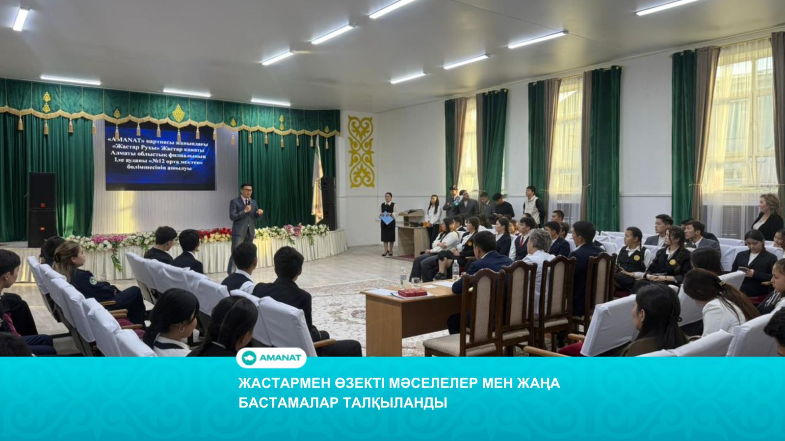 «AMANAT» партиясы Іле аудандық филиалының ұйымдастыруымен жастар арасындағы өзекті мәселелерге арналған ашық кездесу өтті. Шараның басты мақсаты — жастардың ой-пікірін тыңдап, олардың қоғамдағы белсенділігін арттыру және өзекті проблемаларды бірлесе шешу жолдарын талқылау.